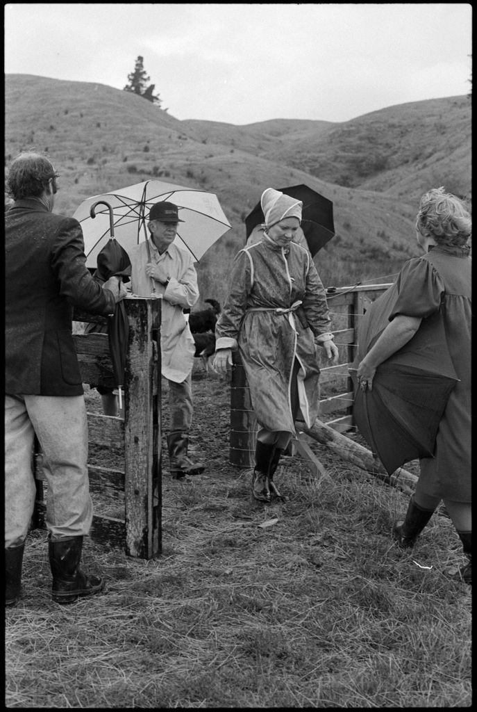 This image was taken by the Evening Standard on the 11th of February 1984 but was not published. It depicts former United States president Jimmy Carter and his wife Rosalynn visiting the hobby-farm of Richard and Barbara Walton at Aokautere.