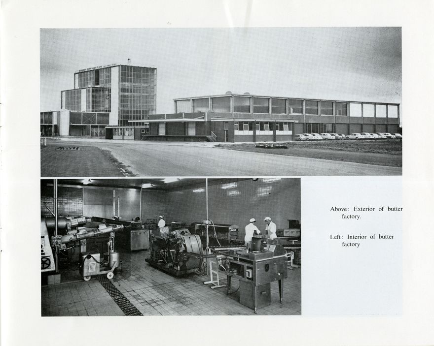 The Manawatū Co-operative Dairy Company Ltd was established in 1960 following the merger of the Awahuri and Rongotea Co-Operative Dairy Companies. To cope with the enlarged intake of milk and cream a continuous butter making system was planned and a new butter factory was opened in 1968. At the time, it was the third largest dairy co-operative in New Zealand, having an ultimate capacity of 20,000 tons of butter a year, a whole milk capacity of 3000, 000 gallons of milk daily and production value of $11,000,000 annually. This booklet lists the Board of Directors, provides and history of the company, details the new continuous butter making system, and gives an overview of the facility.