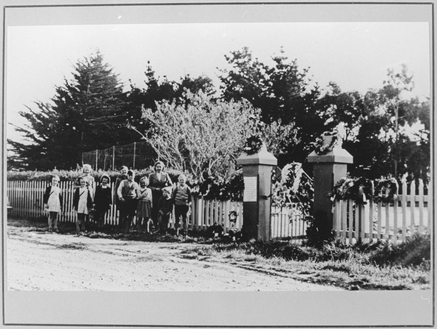Note the wreaths commemorating Anzac Day. Refer Fitzherbert East Aokautere School and District 1889-1989, p 80.