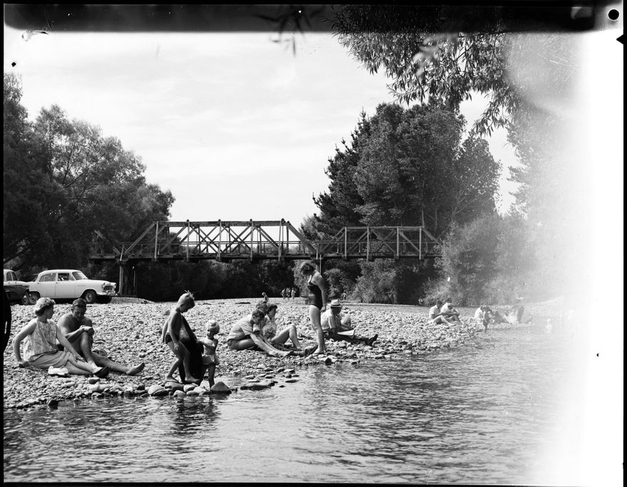 This image was taken for a story that ran in The Manawatu Evening Standard on 16 January 1961: "Many Feilding people spent Saturday afternoon quietly beside the Oroua River picnic spot at Menzies Ford."