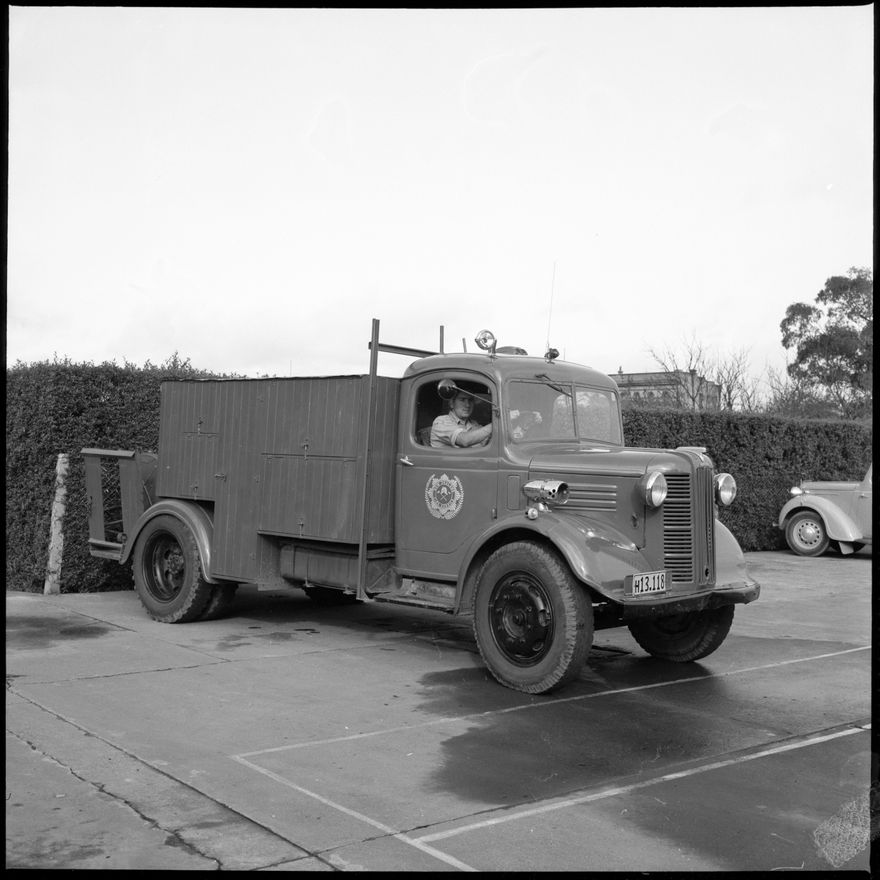 This image was taken for a story that ran in The Manawatu Evening Standard on 27 June, 1963. "The old Austin truck (top photograph) was given to the Ashhurst Volunteer Fire Brigade by the Oroua County Council. Its value today is approximately £250 and has now been replaced by this modern fully equipped engine valued at £4500 (lower picture)."