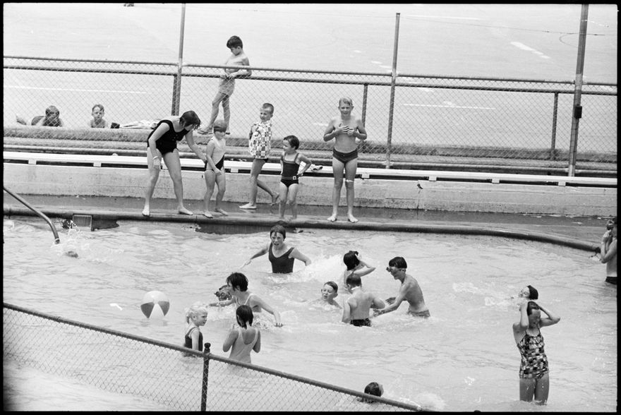 This image was taken for a story that ran in The Manawatu Evening Standard on 4th January 1966 "Memorial Park proved a popular place today. Many children accompanied by their parents beat the heat when they splashed happily around in the cool pool."