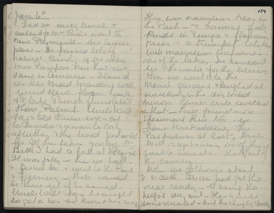 Handwritten diary of Ann ('Nan') Kathleen Jacques, nee Jobson (31 December 1894 - 27 August 1994). She immigrated to New Zealand from England in 1928 with her husband William Jacques, who had been appointed to the staff of the new Massey Agricultural College.