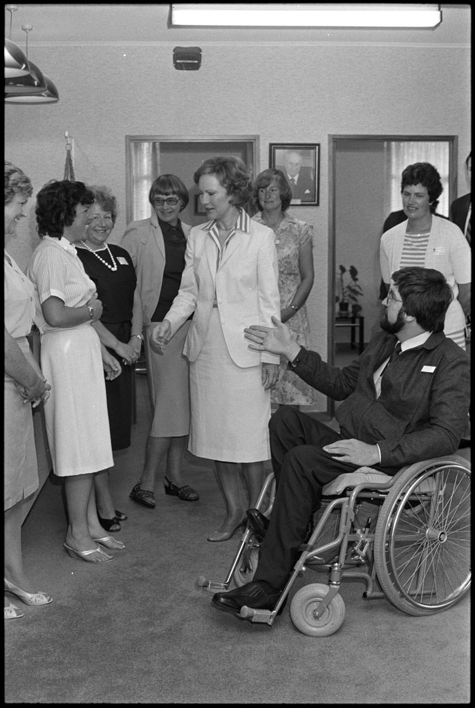 This image was taken by the Evening Standard on the 13th of February 1984 but was not published. It depicts former United States First Lady Rosalynn Carter during a visit to the Crippled Children’s Society in Main Street.