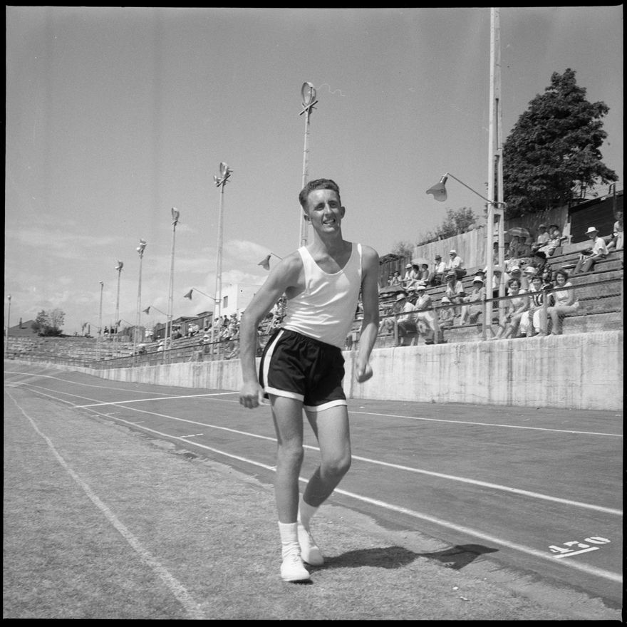 This image was not published in The Manawatu Evening Standard, taken on 10 February, 1964. [A participant in the West Coast Athletics Championships held at Memorial Park.]