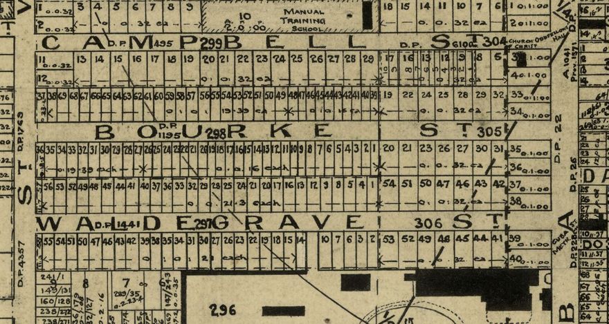 In January of 1886 a loan was authorised for the forming and metalling of private streets. Monies were dispersed on a pro rata basis in each ward. Bourke Street, situated in the no.4 ward, was valued at £112 in April. In May of 1904 residents asked for the old portion of Bourke Street to be improved.