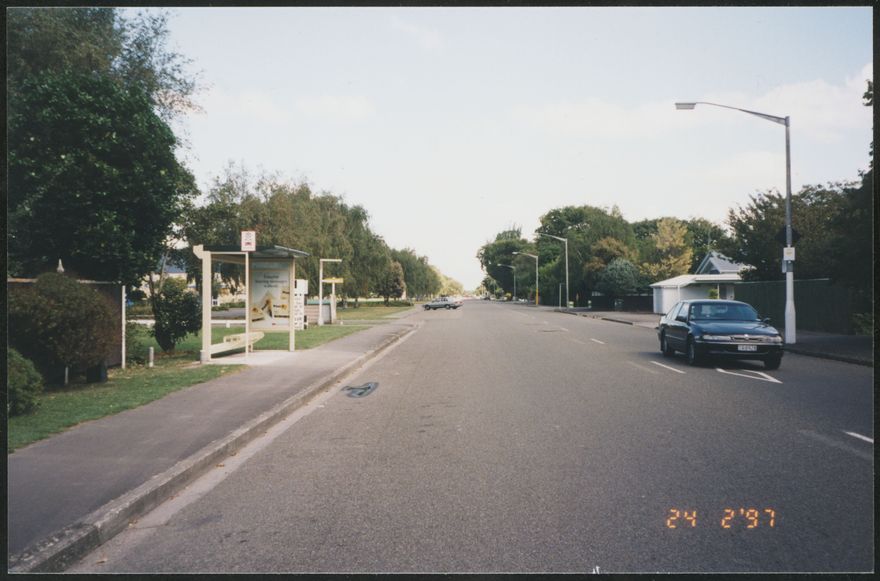 Palmerston North bus shelter on route 1, at 150 Park Road.