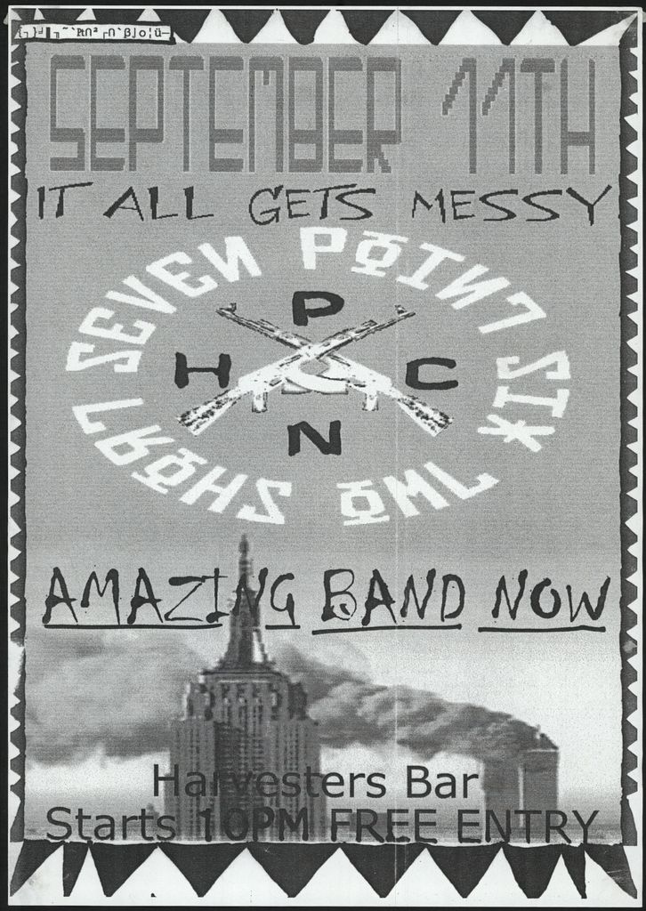 September 11th. It all gets messy. 7.62 Short. Amazing band now. Harvesters Bar. Starts 10pm. Free entry.