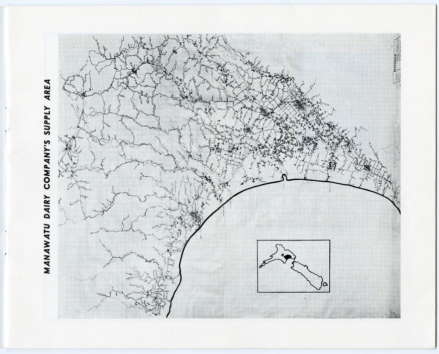 The Manawatū Co-operative Dairy Company Ltd was established in 1960 following the merger of the Awahuri and Rongotea Co-Operative Dairy Companies. To cope with the enlarged intake of milk and cream a continuous butter making system was planned and a new butter factory was opened in 1968. At the time, it was the third largest dairy co-operative in New Zealand, having an ultimate capacity of 20,000 tons of butter a year, a whole milk capacity of 3000, 000 gallons of milk daily and production value of $11,000,000 annually. This booklet lists the Board of Directors, provides and history of the company, details the new continuous butter making system, and gives an overview of the facility.