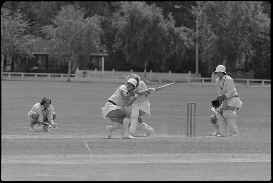 This image was taken (but not published) by the Evening Standard between the 27th and 29th of December 1980. It depicts a moment of action from the Hallyburton Johnstone Shield 2-day match between the Central Districts and North Shore women’s cricket teams. The match was drawn.