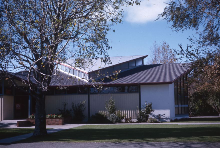 Street view of the Palmerston North Art Gallery on the corner of Carroll & Grey Streets, Palmerston North