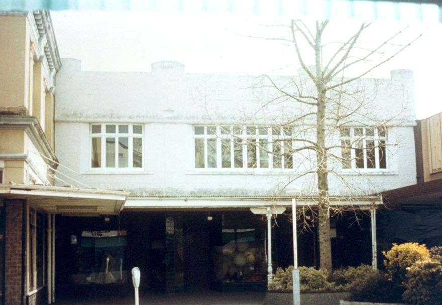 The building was constructed in 1913 for Arthur Hopwood, a prominent Palmerston North businessman, who leased the land. With the building to its right (now demolished), it became part of “Everybody’s Theatre”, and in 1928 the theatre was remodelled to become the Midland Hotel. Much of the hotel was demolished in 1966, leaving this portion remaining for retail shops.