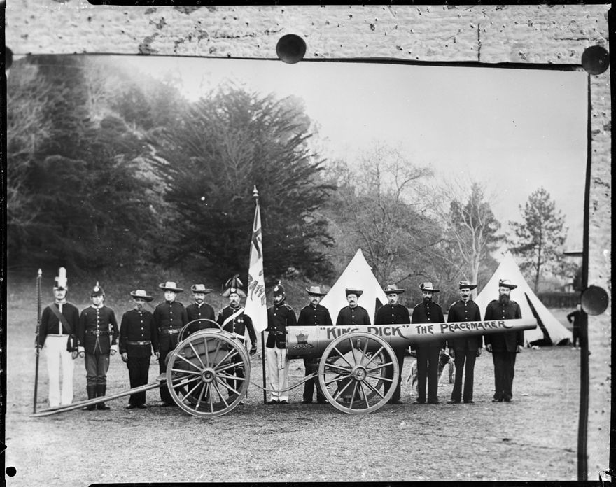 This image was not published in The Manawatu Evening Standard, taken on 7 February, 1959. "Reproduction of unpublished photo from 1902 during peace celebrations in Nelson, following the South African War. Richard Seddon (King Dick) was premier of New Zealand."