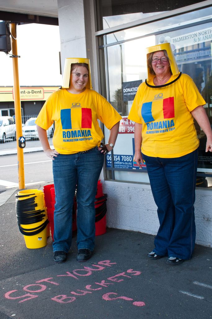 Honouring Manawatū Rugby supporter’s tradition of wearing buckets with cut-outs for the face, fans attending the Romania vs Georgia Rugby World Cup game were offered free themed versions for the game: Red for Georgia and yellow for Romania.