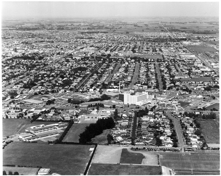 Aerial photograph of Palmerston North Hospital.