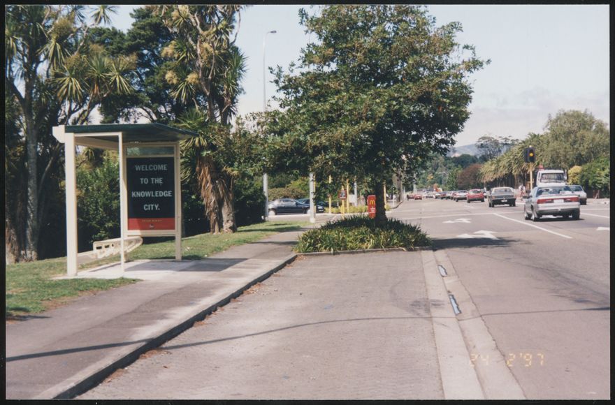 Palmerston North bus stop on route 12, at 225 Fitzherbert Avenue.