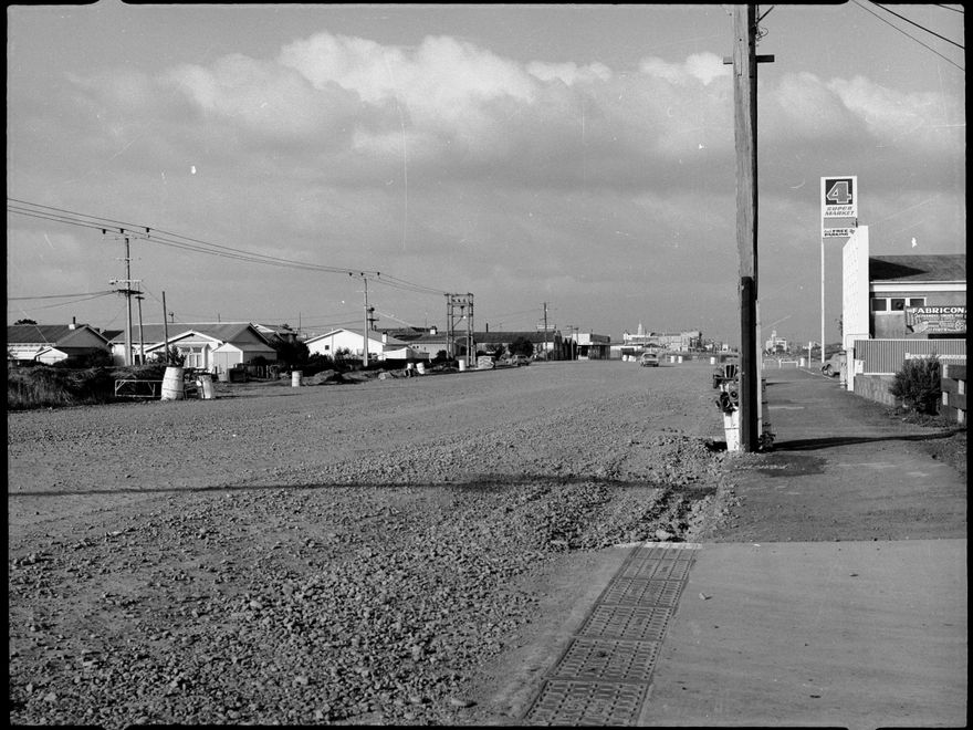 This photograph looks towards the intersection of Pioneer Highway and West Street, and beyond towards The Square. On the right side is a Four Square Supermarket.