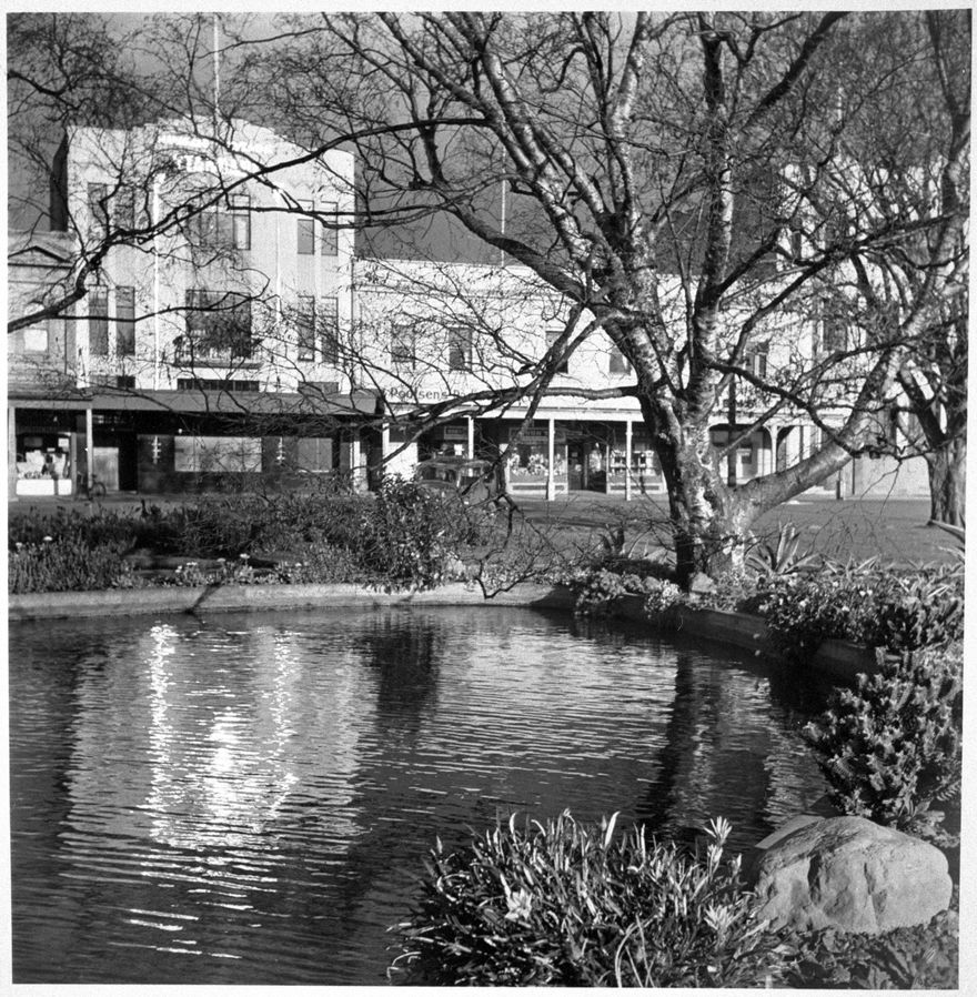 The Lakelet was constructed in October 1909. It was the main feature of the last quadrant of The Square to be developed by the Beautifying Society. James Nash, Mayor of Palmerston North 1908-1923, opened the Lakelet before a crowd on 27 October 1909. The Lakelet is shaped as a butterfly, with the wings being bisected by a bridge as its body. It is also referred to as the Butterfly Lake. The building behind is the Manawatu Evening Standard's head office.