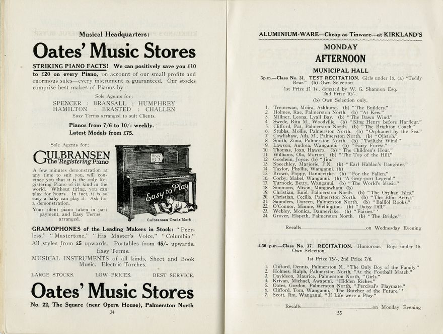 Manawatū Competitions Society, Official Programme, Thirty-Seventh Annual Festival