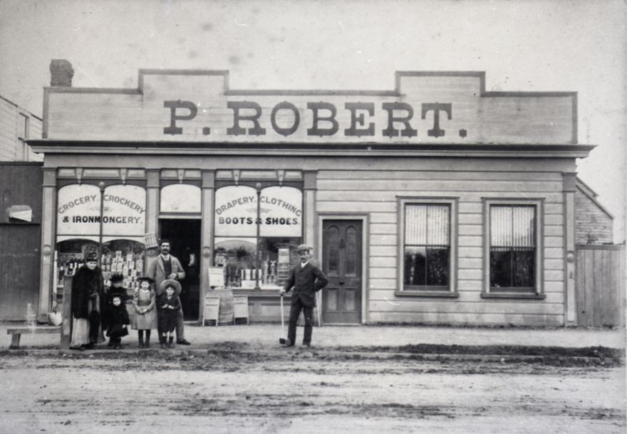 Exterior of Percy Robêrt's store on Main Street. Percy took over the family business following the death of his father, Charles Robêrt.