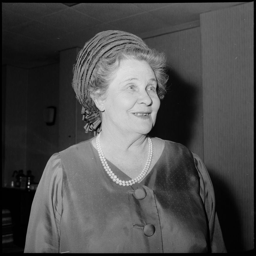 This image was taken for a story that ran in The Manawatu Evening Standard on 26th January 1966 "Mrs. Lorna Hellaby, the well-known theatre enthusiast in the city during the early days and now residing in Cape Town, made a flying visit to see her only sister Helen (Mrs. E. Whitehead), whose death over a week ago came as a shock to her many friends."