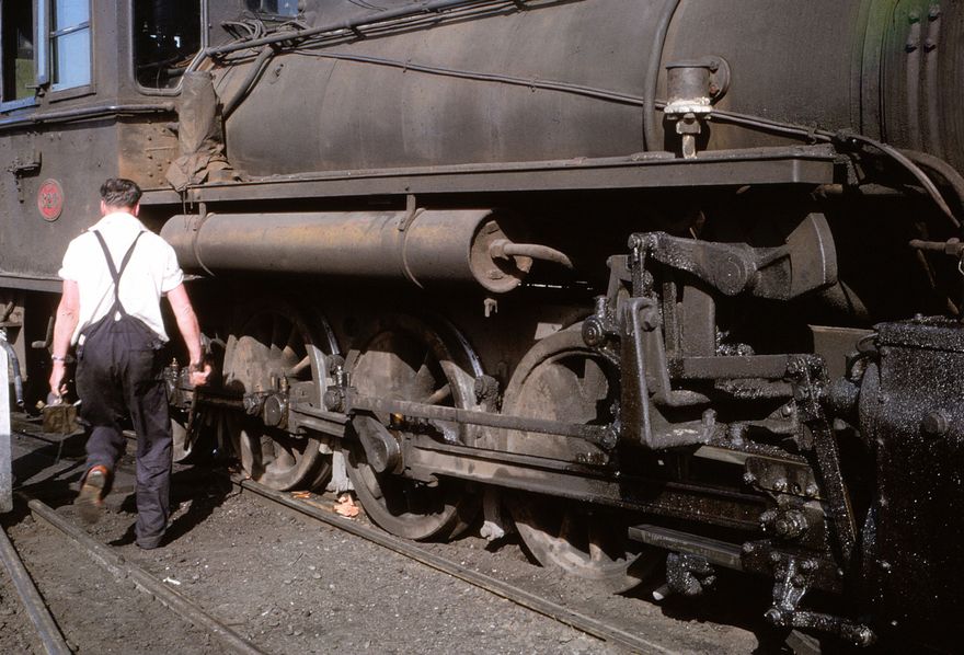 A railways worked attending to BB class locomotive 626 that derailed in the Palmerston North railway yards.