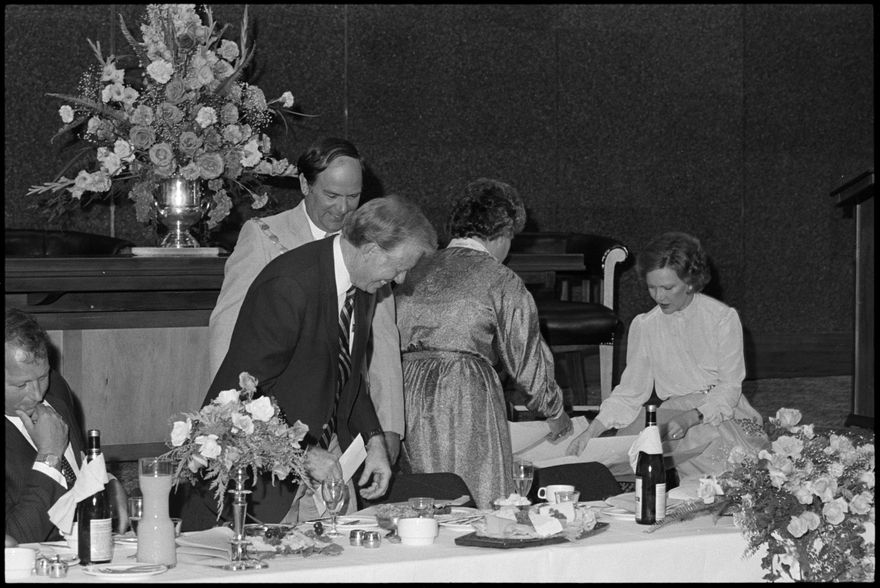 These images were taken by the Evening Standard on the 11th of February 1984 but were not published. They depict former United States president Jimmy Carter and his wife Rosalynn at a luncheon hosted by city officials.
