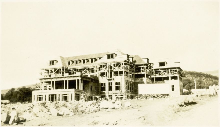 The Chateau, a neo-Georgian structure of four stories and basement, was designed by Timaru-based architect Herbert Hall (1880–1939) who modelled it on the Canadian Resort of Lake Louise.