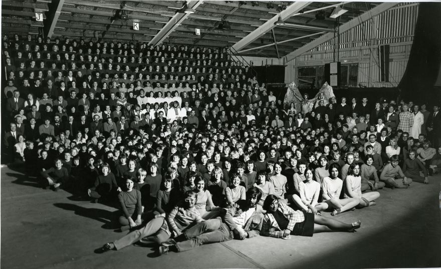Front left: Morva Croxson, Peter Tulloch (director) and Jenny McLeod (composer) This image was donated to Manawatū Heritage in 2021.