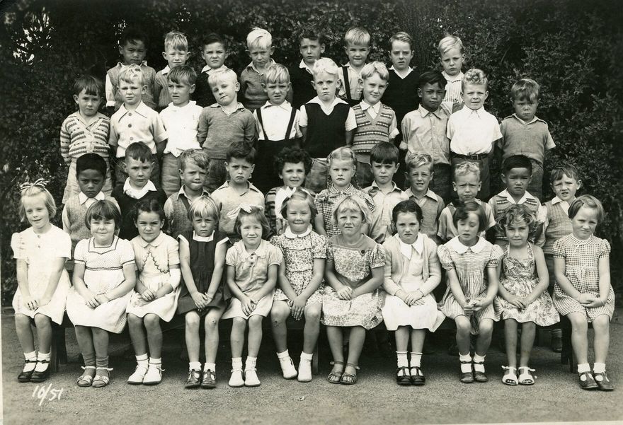 Primer 2 infant class of West End School, Palmerston North, taught by Miss Freeman (not pictured). From left. Back Row: Unknown; Peter Reynolds; Bobby Bell; Unknown; Unknown; Brian Marshall; ? Robinson; Kevin McSweeney. Third row: Nicholas Thompson; Unknown; Unknown; Unknown; Keith Clausen; Unknown; Unknown; John Te Rangi; Glengarry McDonell; Peter Markham. Second row: Unknown; Ian Matheson; Selwyn Francis; Ken Turner; Unknown; Unknown: Brian Kelleher; Gordon Cameron; Donald Scott; Unknown; Mark Fuller. Front Row: Maxine McGormick; Unknown; Pauline Loveridge; Catherine Imery; Judith Proctor; Terry ?; ? Duthie; Unknown; Unknown; Unknown; ? Johnston.