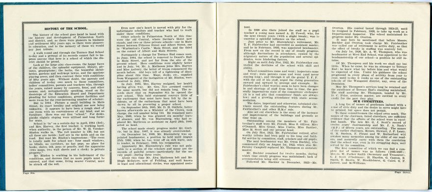 Terrace End School 50th jubilee booklet (1884-1934). Includes school history, photographs, local business advertisements, timeline of school-related events, and accounts of the jubilee celebrations.