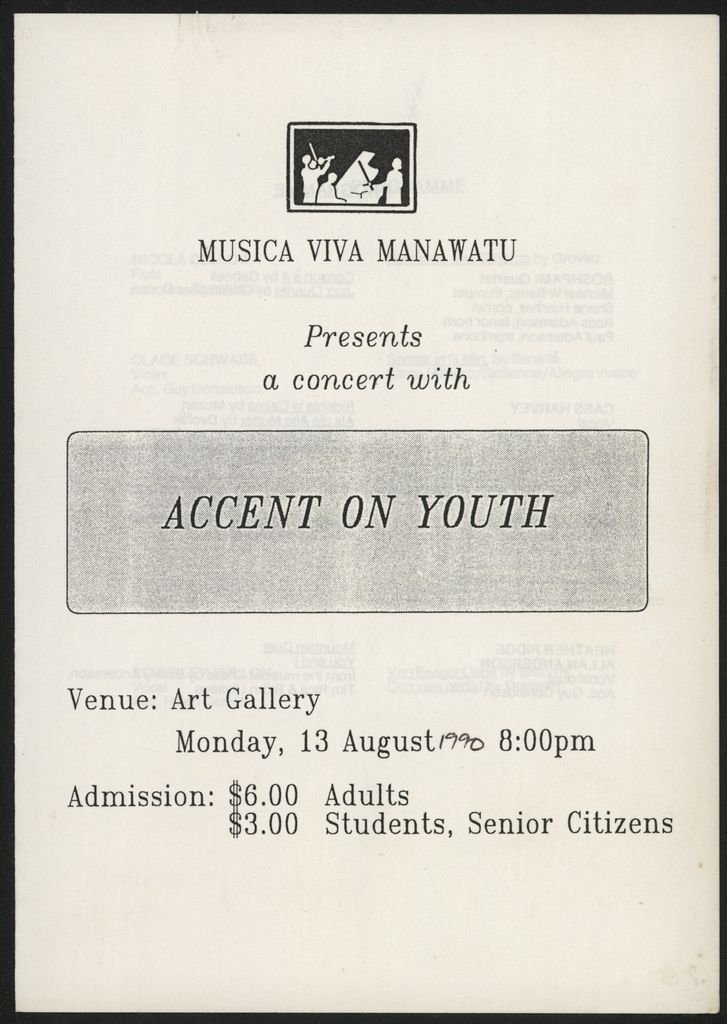 A programme from the Musica Viva Manawatū concert "Accent on Youth."