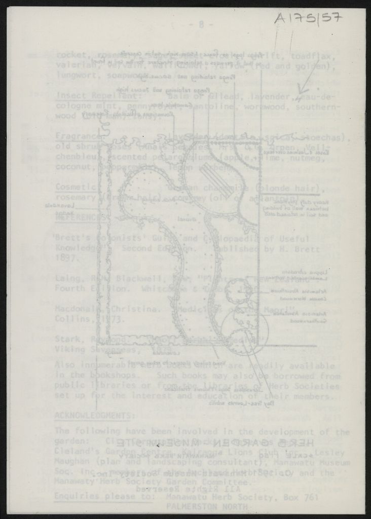 The Totaranui Herb Garden was opened in early 1981 to give visitors an idea about what pioneer gardens might have looked like. This booklet includes a list of some of the native and introduced fauna found in the area that could be foraged for medicinal and household purposes, pioneer recipes and map to the garden's layout.