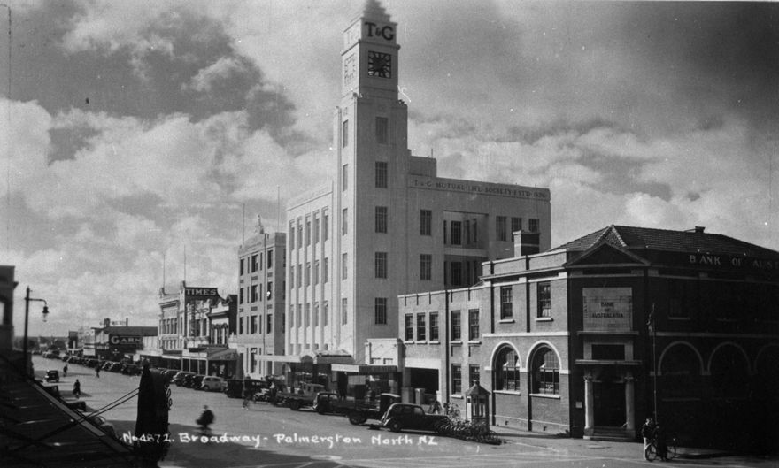 - Broadway Avenue, originally Broad Street, Palmerston North, was renamed, at the instigation of G H Bennett, bookseller, and other retailers, by Borough Council resolution in March 1926. The photograph looks down Broadway with the Bank of Australasia on the corner and the T and G Building beside it (built 1937).