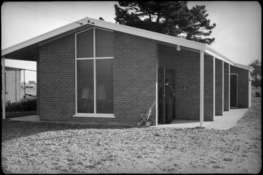 Caption: “From the outside: The modern lines of the structure are pleasing to the eye and the new church will be an asset to the community.”