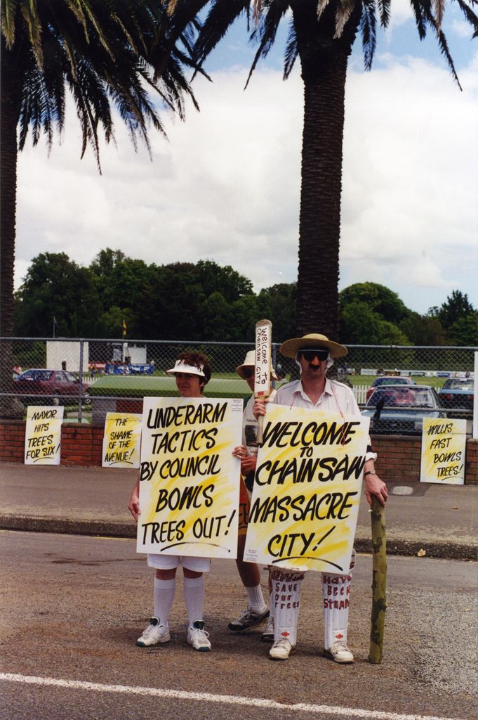 Avenue Action was formed in protest against the Palmerston North City Council removal of trees in Fitzherbert Avenue. This was to allow for four lanes of traffic as an engineering solution to cross-river transportation problems in 1997.