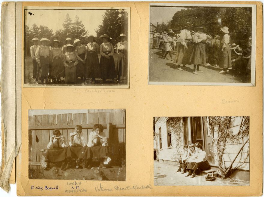 This loose page from a photograph album contains 8 photographs of Craven pupils, one named '1911 Cricket Team' and another named 'Sports 1911'.