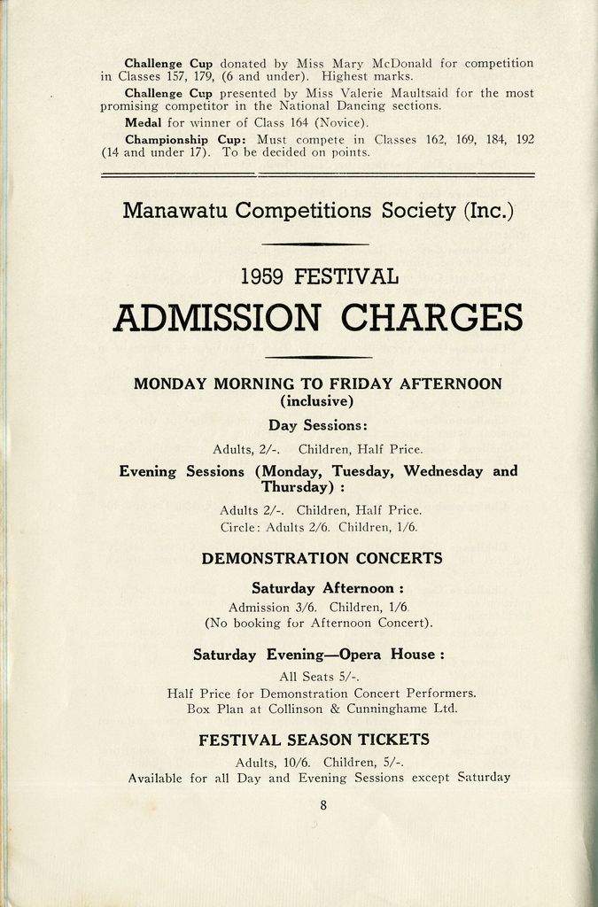 Manawatū Competitions Society, Official Programme, Seventh Annual Festival