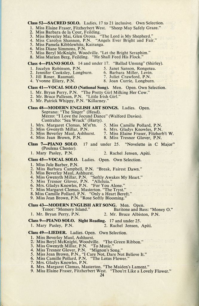 Manawatū Competitions Society, Offical Programme, Thirty-Sixth Annual Festival