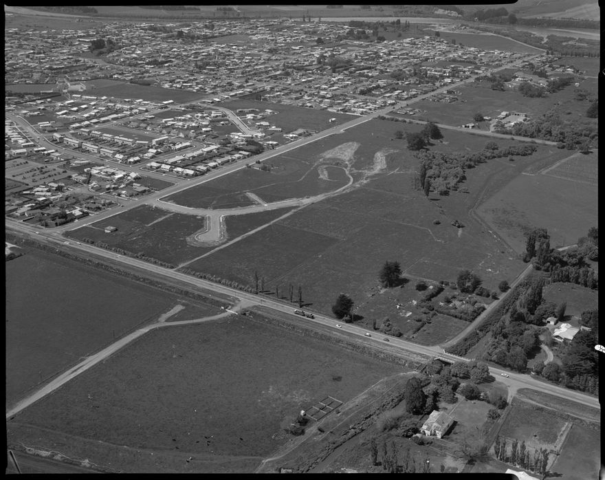 This aerial is believed to be set in Palmerston North. Can you identify the location? Please use the comments tab to let us know so we can update the information attached to this record.