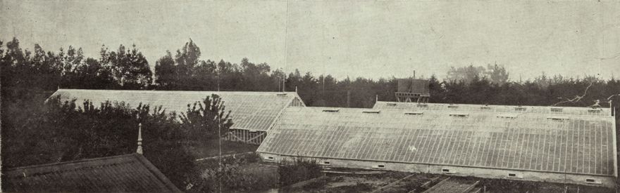 John Nairn established his market garden business at the end of College Street, as it was then, in 1893. In all, seven glass houses and other buildings were built over the years. The family business largely grew tomatoes, cucumbers and grapes. These three glass houses measured respectively 100ft by 28ft, 78ft by 28ft and 153ft by 26ft, and were claimed to be the most substantially built structures for commercial growing throughout Australasia. High pressure artesian water tanks imported from England are shown at the rear of the buildings. The business was demolished in 1958, to make way for residential growth in the Awapuni area.