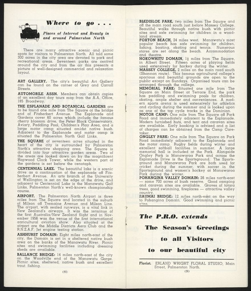Visitors Guide Palmerston North and Feilding: October-December 1962