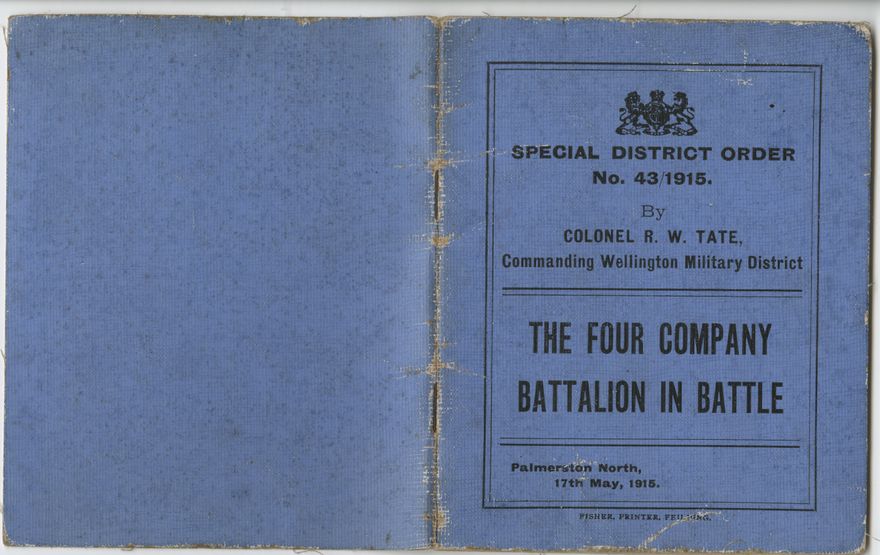 Special District Order No. 43/1915. By Colonel R. W. Tate, Commanding Wellington Military District. The subject of this paper is the four-company organization recently adopted for the infantry of the Regular Army, and which will shortly be also adopted for the Territorial Force. Originally this article was given as a lecture to the London Units of the Territorial Force, by Brevet-Major Hereward Wake, King's Royal Rifles.