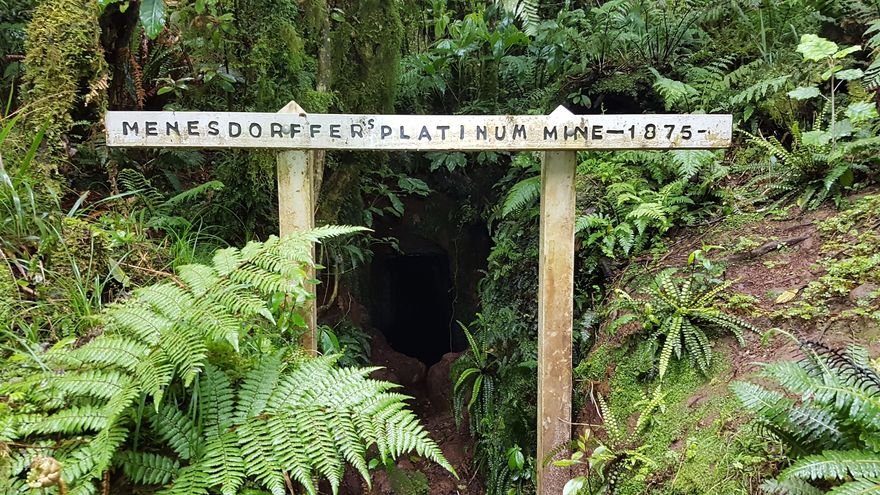 One of two horizontal platinum mine shafts in the Kahuterawa Valley carved out by Alexander Menesdorffer circa 1875. The mine is located at the northern end of the Toe Toe Loop and is approximately 7 metres in length and is partially flooded, with giant weta inhabiting the roof of the shaft.
