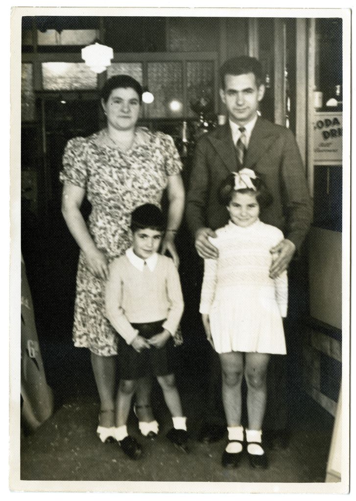 Peter Bares (Panayioti Ververis) was born in Greece and emigrated to New Zealand in 1930. His wife Maria (nee Vounatsos) came to New Zealand from Greece in 1939, to marry Peter. They had three children, Mercina, John and Jim. Originally living in Wellington they moved to Palmerston North in 1945 when they bought the Royale Dutch luncheon and tearooms, which they ran until selling it in 1957-1958. The photograph shows the family outside the Royale Dutch at 170 Broadway, Palmerston North. Further information can be found on the Bares family and businesses at IMCA A175/381-R.
