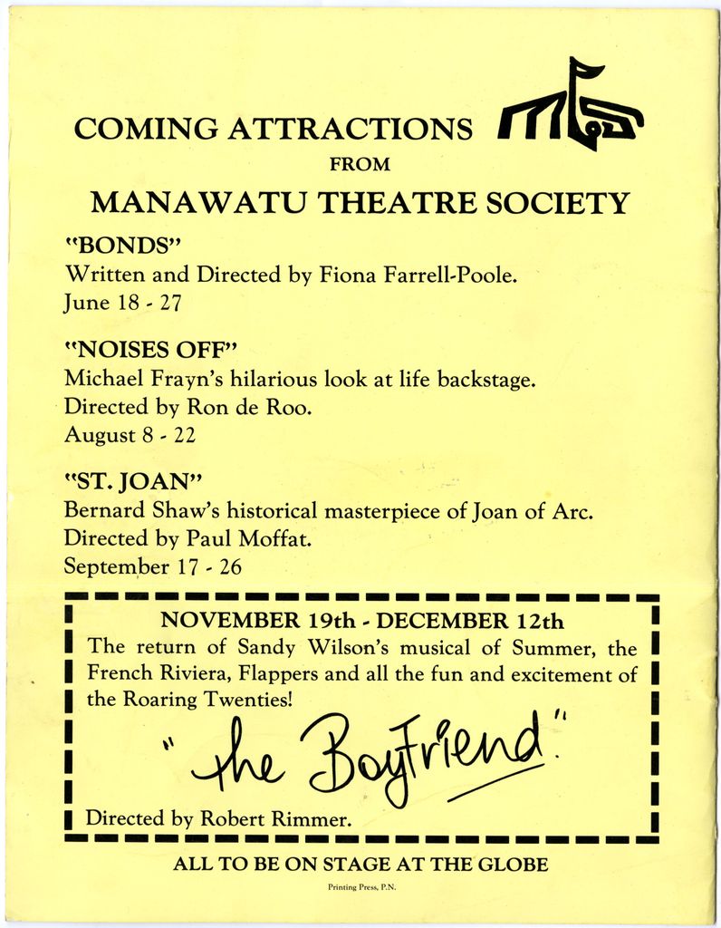Title page reads, "MANAWATU THEATRE SOCIETY