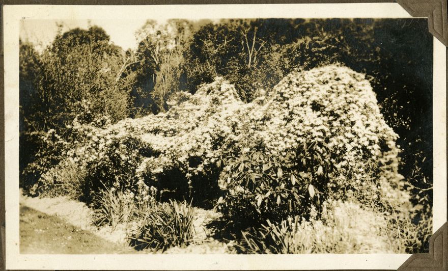 This small photograph album belonged to Mrs R Andrews of Rangitikei House. This photograph bears the caption, "Clematis Esplanade PN"