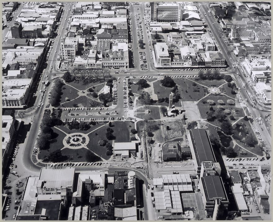 This photograph was taken from the western side of The Square with the Civic Centre in the foreground to the right of Main Street West (centre foreground).