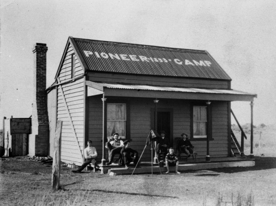 Charles Dahl, a Palmerston North businessman, had one of the first holiday homes at Foxton Beach. This photograph was taken during a weekend visit of the Palmerston North Camera Club.
