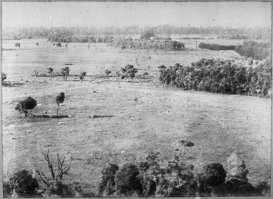 This photograph shows the remnant of native forest still growing on the flood plain of the Manawatu River in the late 1880s. 'Willowbank' was owned and farmed by J O Batchelar and his family. The buildings and land were purchased by the Government in 1926 and provided the initial site of Massey Agricultural College when it opened in 1928. After the College moved to a site on the hill across the road the house was used as a student hostel. It was later demolished, in the 1980s.